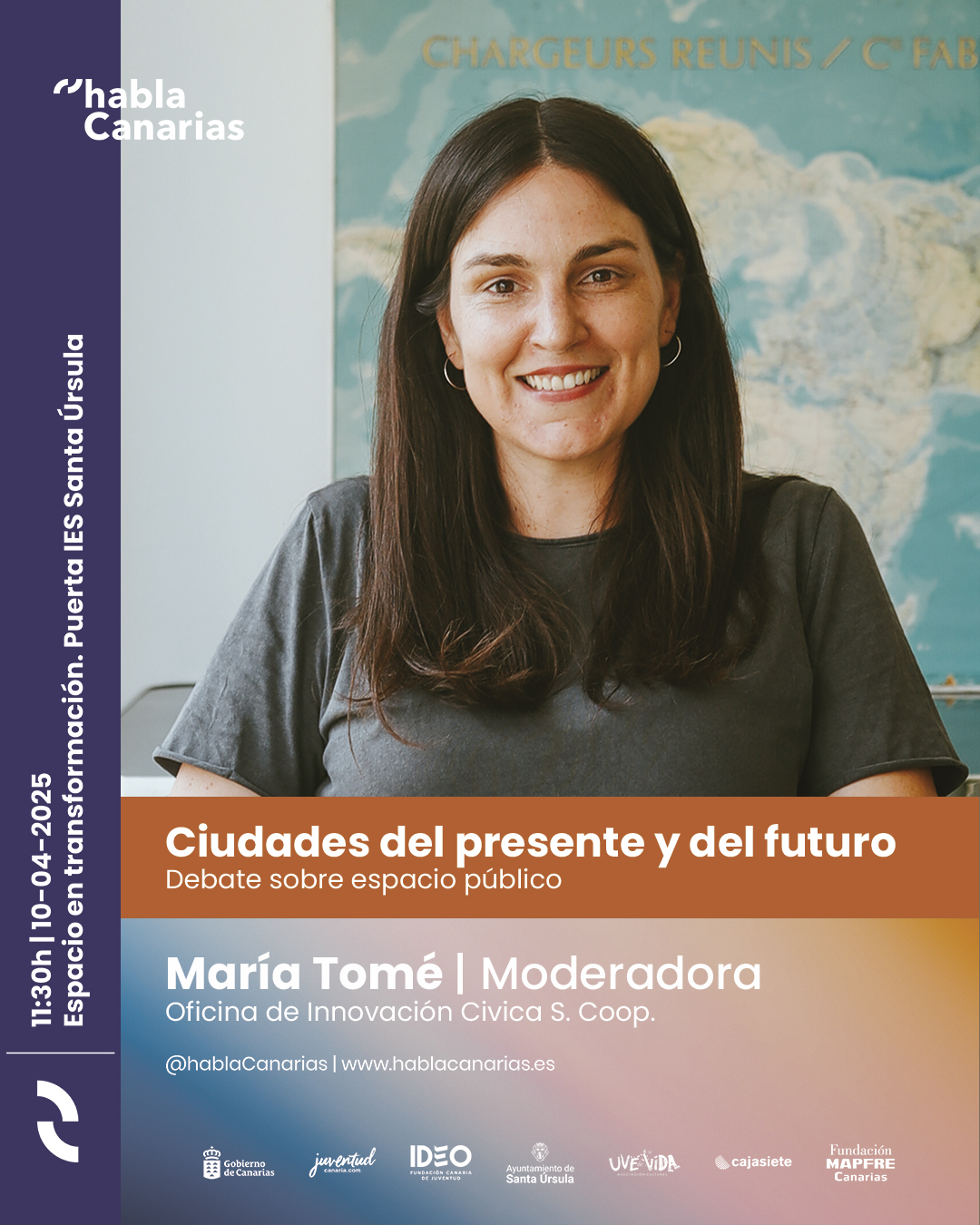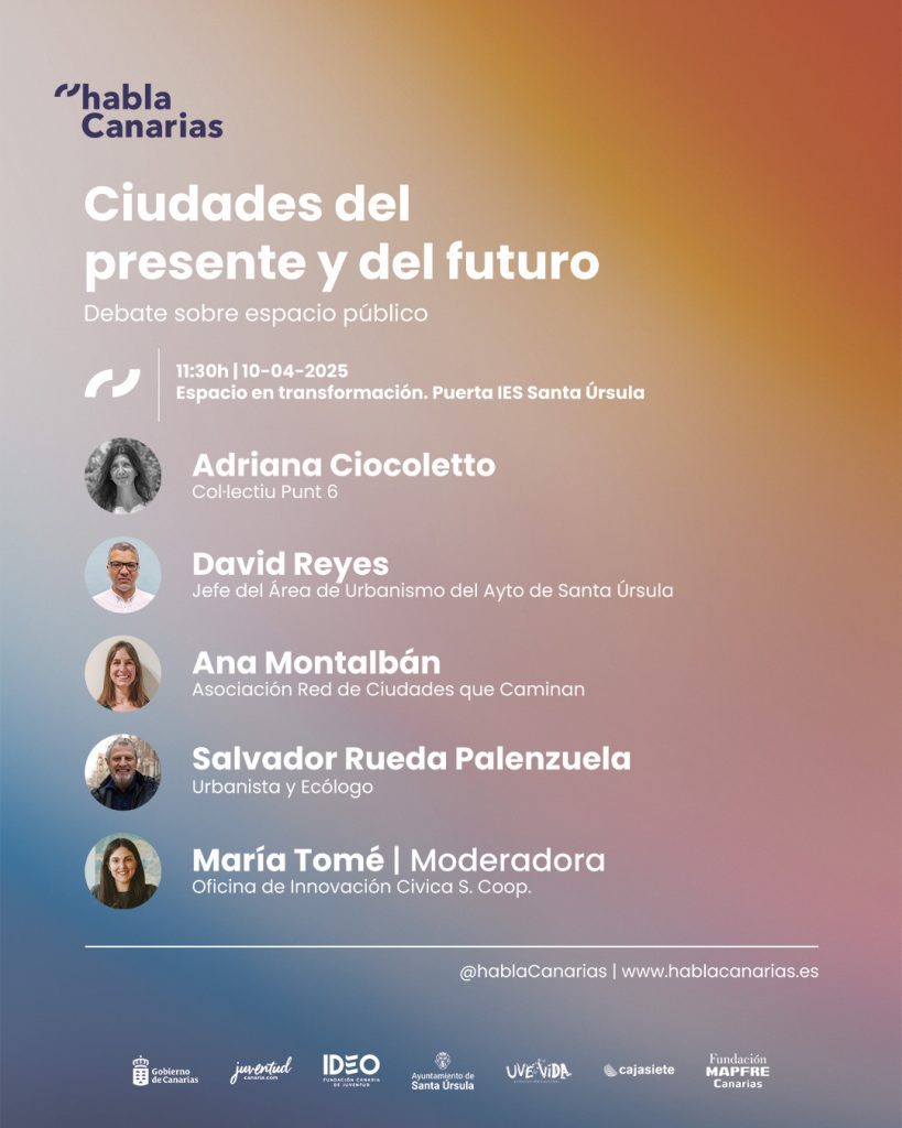 Agradecimientos especiales a los Ayuntamientos de Santa Úrsula y La Laguna, la Dirección General de Juventud del Gobierno de Canarias, al Área Insular de Empleo, Educación y Juventud del Cabildo de Tenerife. Aunque la asistencia es gratuita, se recomienda reservar asiento a través de nuestras redes sociales o enviando un correo a hablacanariasrrss@gmail.com
