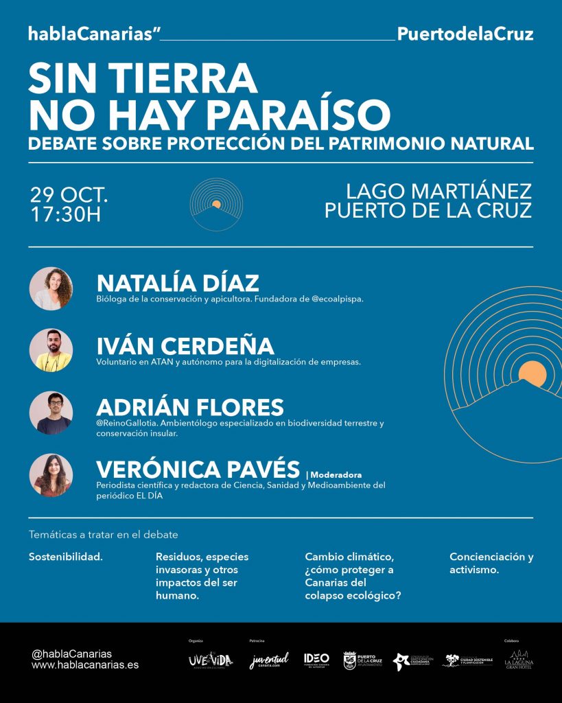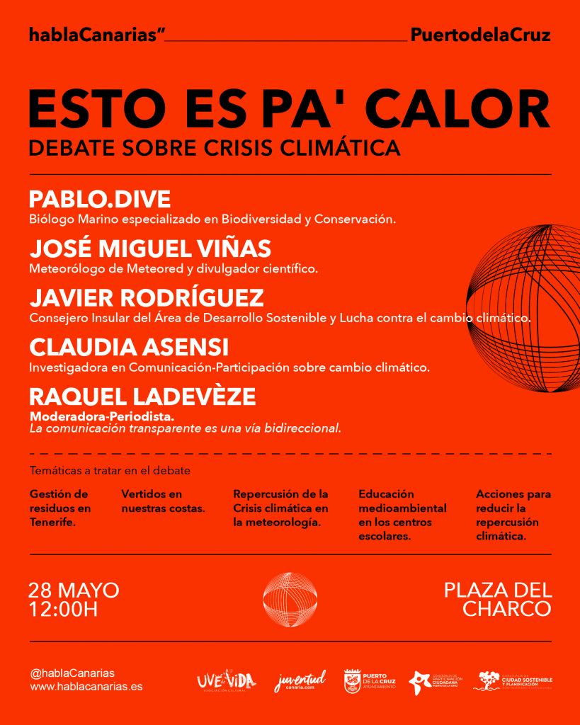 Agradecimientos especiales a la Dirección General de Juventud del Gobierno de Canarias, al Área Insular de Empleo, Educación y Juventud del Cabildo de Tenerife, el Ayuntamiento de La Laguna y La Laguna Gran Hotel. Aunque la asistencia es gratuita, se recomienda reservar asiento a través de nuestras redes sociales o enviando un correo a hablacanariasrrss@gmail.com