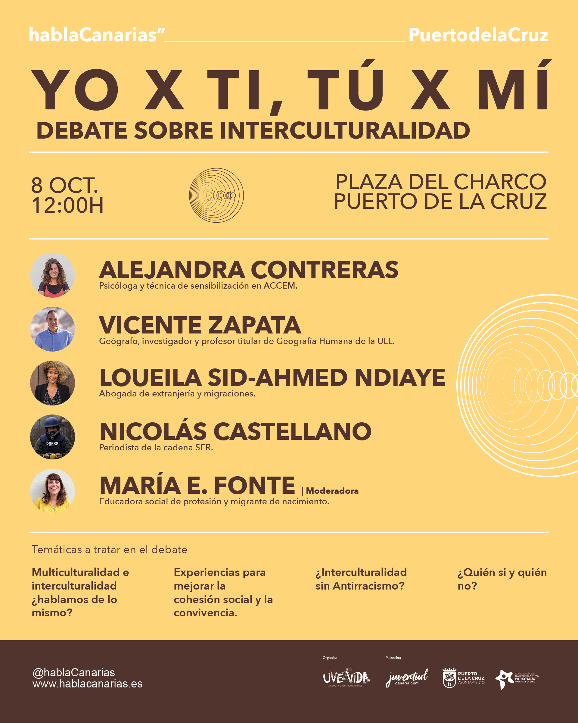 Habla Canarias es un espacio de debate y/o diálogo abierto a la ciudadanía en torno a diferentes temáticas de interés común en nuestra sociedad. En esta nueva edición, los encuentros se llevarán a cabo en formato presencial en los municipios de Santa Cruz de Tenerife y San Cristóbal de La Laguna, además de centros educativos de la isla de Tenerife, manteniendo así, su formato atractivo y participativo.